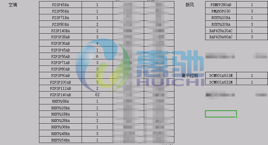 項目空調系統配置表