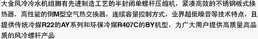 UWAP40~480BY UWYP40~480BY UWAP40~480BYK UWAP40~480BYZ R407C冷媒 D-Tandemstage回路 全系列機型COP達到3.2~3.7 壓縮機及風扇實施新型降噪措施 寬廣的 機組運轉(zhuǎn)范圍 可進行10%~100%的連續(xù)容量控制