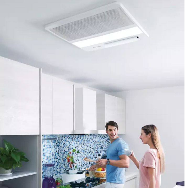 大金金制全效家用中央空調(diào)廚房專用空調(diào),專為廚房設計。超薄嵌入式內(nèi)機不占空間,