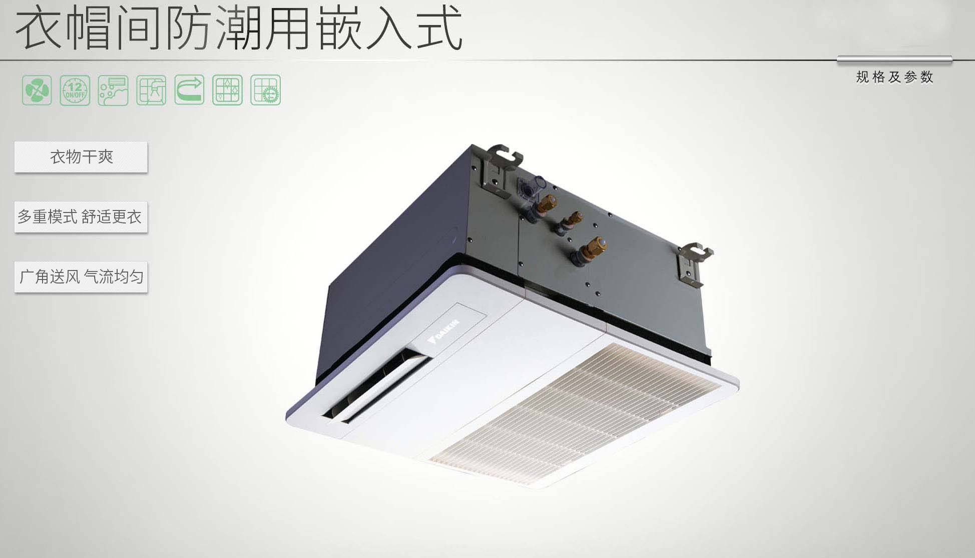 大金衣帽間專用空調(diào)智能檢測,濕度過大時自動開啟除濕模式,運用魔力三管技術(shù)